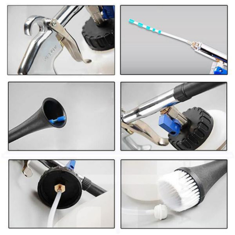 Denna högtryckstvätt möjliggör en snabb och effektiv rengöring av både insidan och utsidan av fordonet. Dess koniska munstycke i kombination med en roterande åtgärd riktar in sig på inbäddad smuts. Kompatibel med alla luftkompressorer, når den enkelt svåråtkomliga områden.